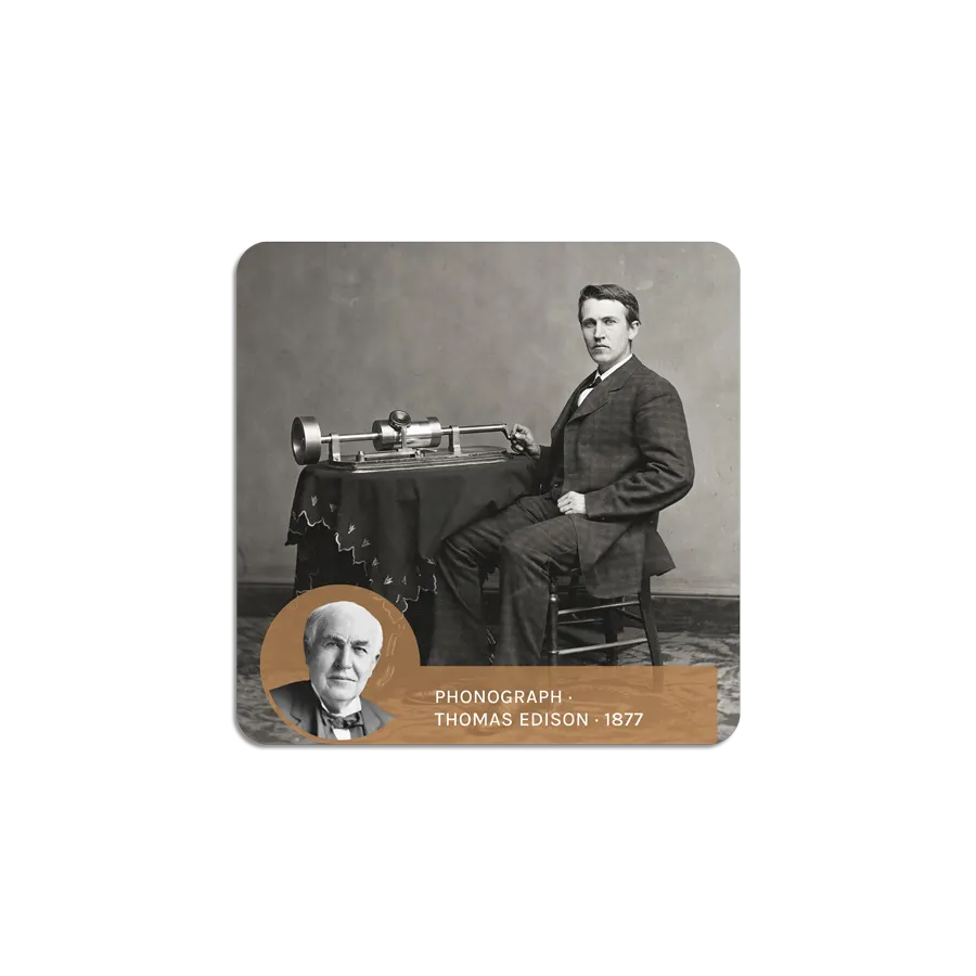 A set of 20 magnetic cards that captivate the scientific advancements during Industrial and Technology Revolution. Each card portrays an important discovery or invention, with insightful details on the back.